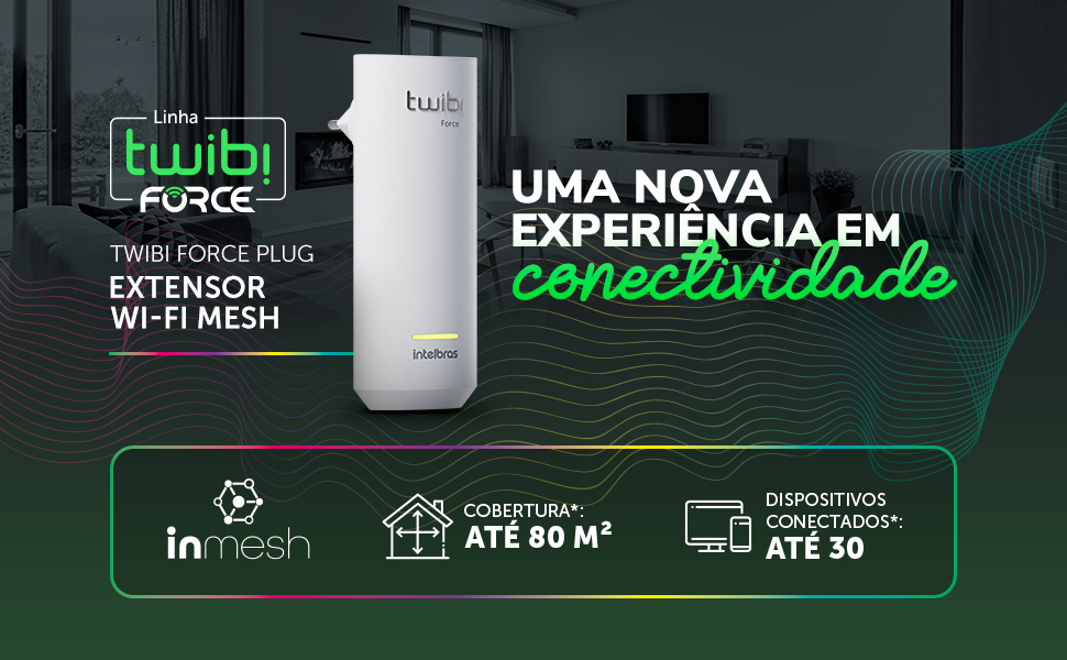 » Expande rede Wi-Fi em até 80*m² e conecta até 30* dispositivos simultaneamente.