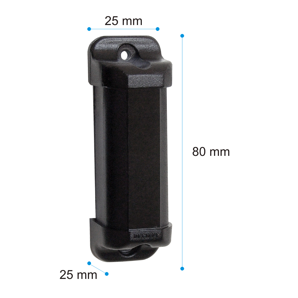 - Confeccionado em policarbonato com dimensões de: 80 x 25 x 25 mm.